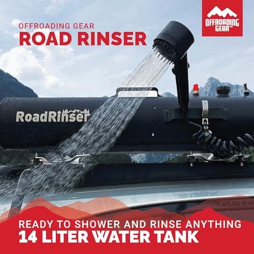 Specification: Offroading Gear 4×4 Road Rinser 14 Liter Pressurized Water Rinser Tank & Shower| Can fit on Roof Rack or Hitch Mounted| Great for Camping| Overland| Beach| Etc. | Black